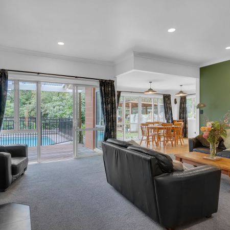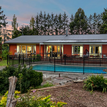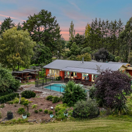 The tree lined driveway opens out to a private and sheltered setting encompassing a recently renovated home with quality finishings, including new carpet; the sleepout includes a bedroom and bathroom; an outdoor area complete with swimming pool the kids are going to love; and nearly 6 acres full of mature shelter and specimen trees – offering not only peace, privacy and established shelter, but plenty of scope for new owners to realise the potential and create a home and property exactly how you want it.